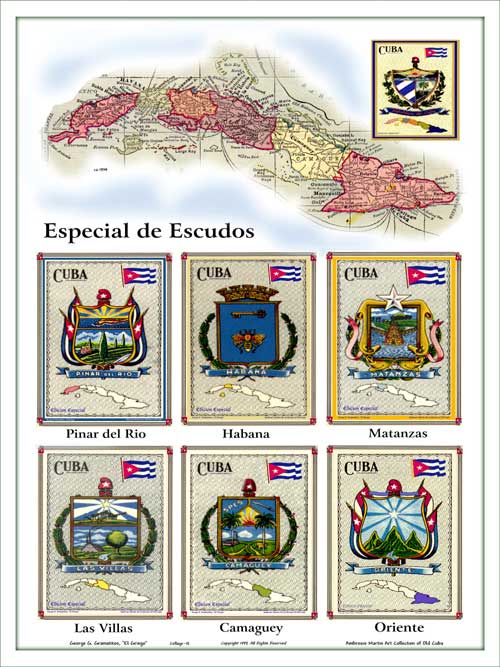 Six Province Crests with 1934 Map and National Crest (Escudo)